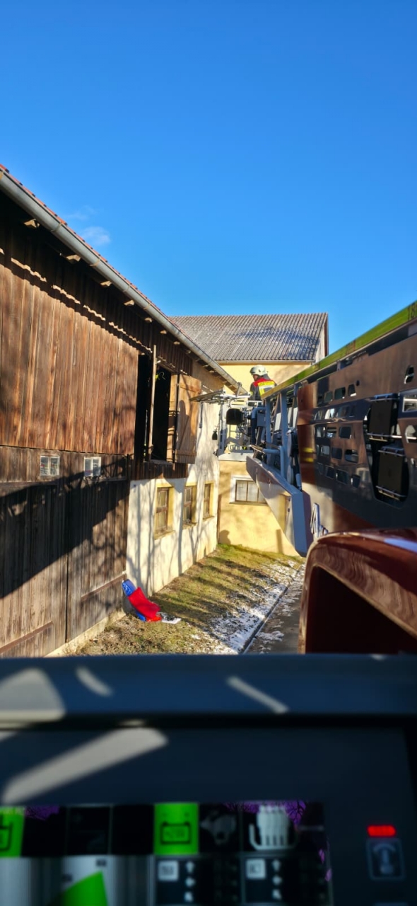 Eine Person war im ersten Stock eines Stadls von einer Leiter gestürzt und konnte den Bereich aufgrund der erlittenen Verletzungen nicht mehr selbstständig verlassen.